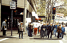 3. A street corner-load of entertainment (south-west corner of Castlereagh and Park Streets, Sydney), Saturday afternoon.