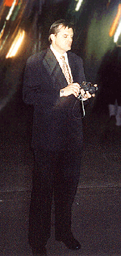 1. A Friday evening shot of the bouncer looking fellow who was kind enough on the Saturday afternoon to ask myself and Eric Rose what the police would find when searching our homes that afternoon. What a charmer.