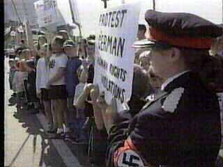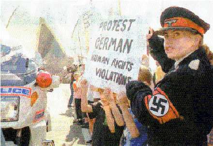 Magazine photo: "Scientologists, such as these in Australia last month, have aggressively protested the way the Church is treated in Germany."