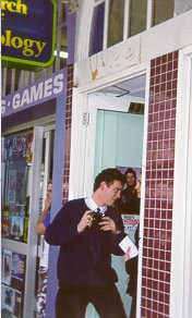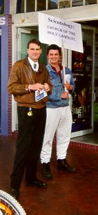 8. "There is me (Hemi), being my friendly self, next to one of the clams who followed us. 'Critic tries to befriend a sadly deluded Scientologist' or something."