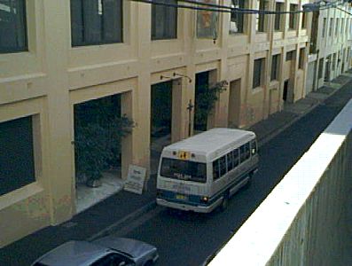 3. July 1999: AOSH ANZO - commentary by Nick Andrew. "Greek Street runs roughly west to east. This pic is from the western end of the shopping centre carpark opposite, showing the entire street frontage. I wish I had got a pic of the dock area (lower right). As I walked past the building I saw several washing machines on the left wall and quite a lot of milk and bags of flour on the right hand side. All in all the building looked fairly well-kept, except for the dock area which looks like all docks."