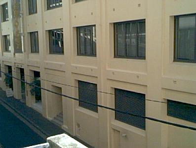 8. "The upper two floors again, just from an angle which shows more of the building. Note the bird on the drainpipe, shitting with impunity."